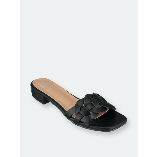 Keep your go-to style simple yet stylish with the Dana slide sandal by GC Shoes. Boasting a single banded upper in woven detail, this slip-on features a low block heel for an eye-catching appeal.