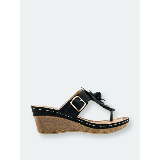 Bring out your nature-loving style with the floral sandal from GC Shoes. These wedges have a cushioned foot bed for long lasting comfort and floral appliques for a feminine finish.