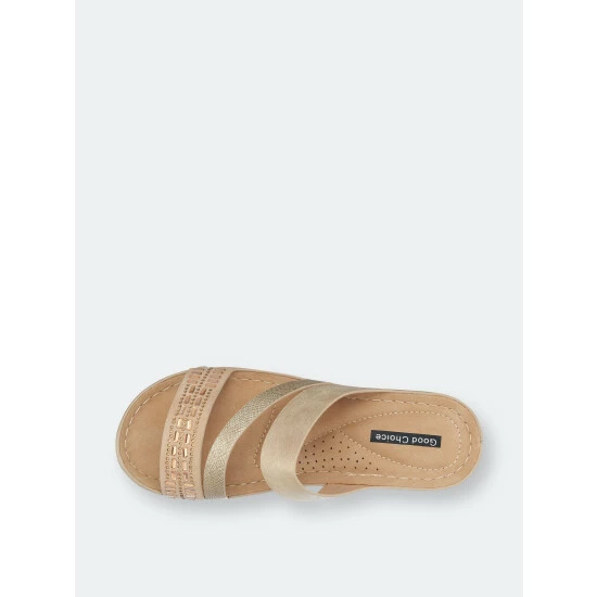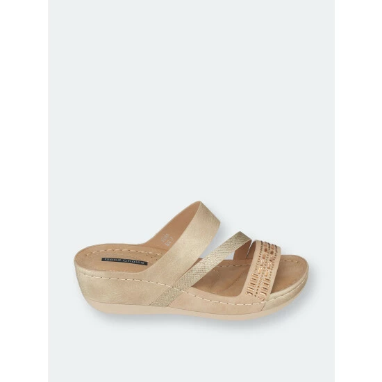 Delight ensembles with the Tere sandals from GC Shoes. This slip-on pair features an asymmetrical strap and embellishments on the front strap. A platform wedge heel creates eye-catching height.